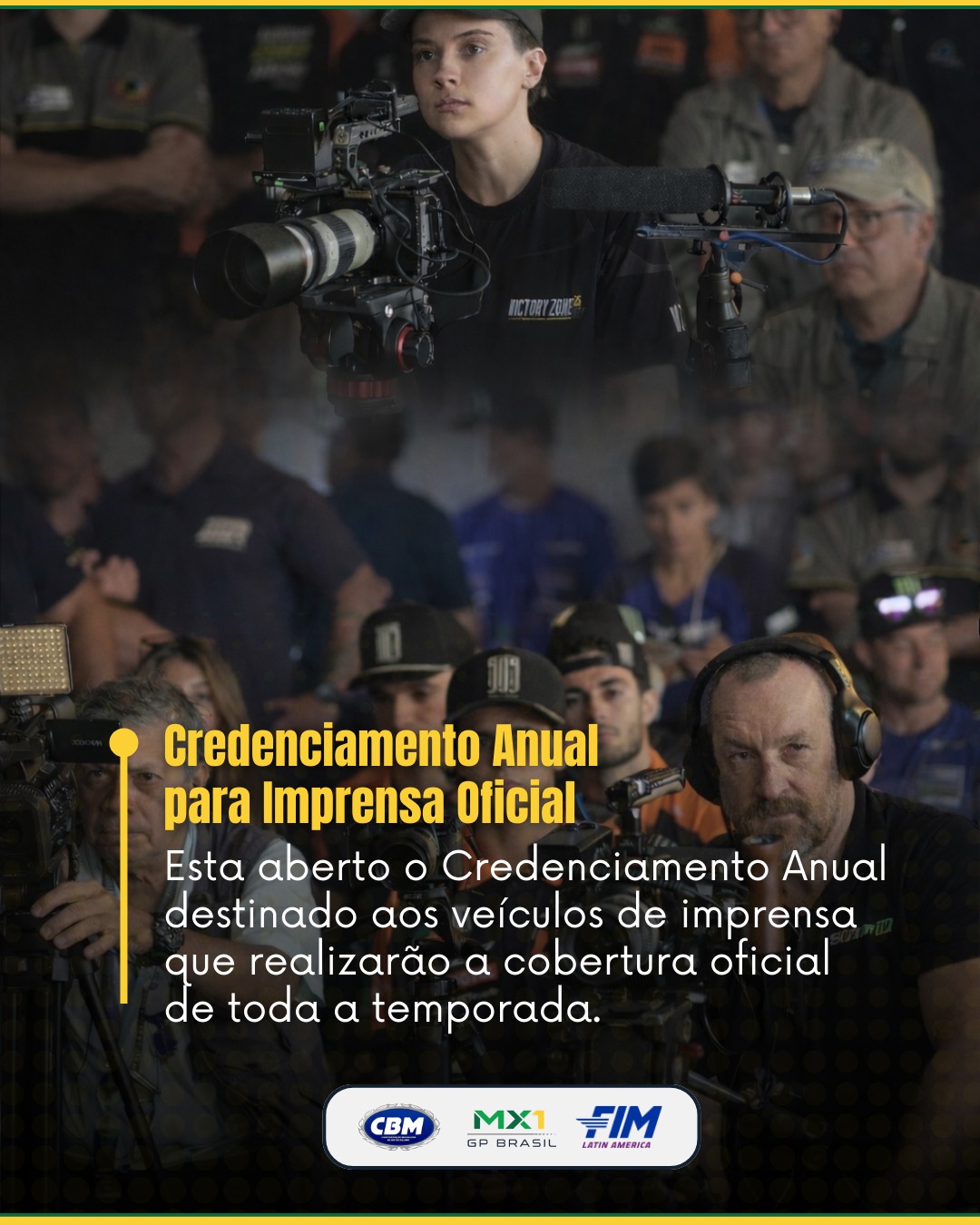 A PROMOX Brasil, promotora oficial do MX1 GP Brasil informa que está oficialmente aberto o credenciamento anual de imprensa destinado exclusivamente aos profissionais que integrarão a cobertura oficial em todas as etapas da temporada.