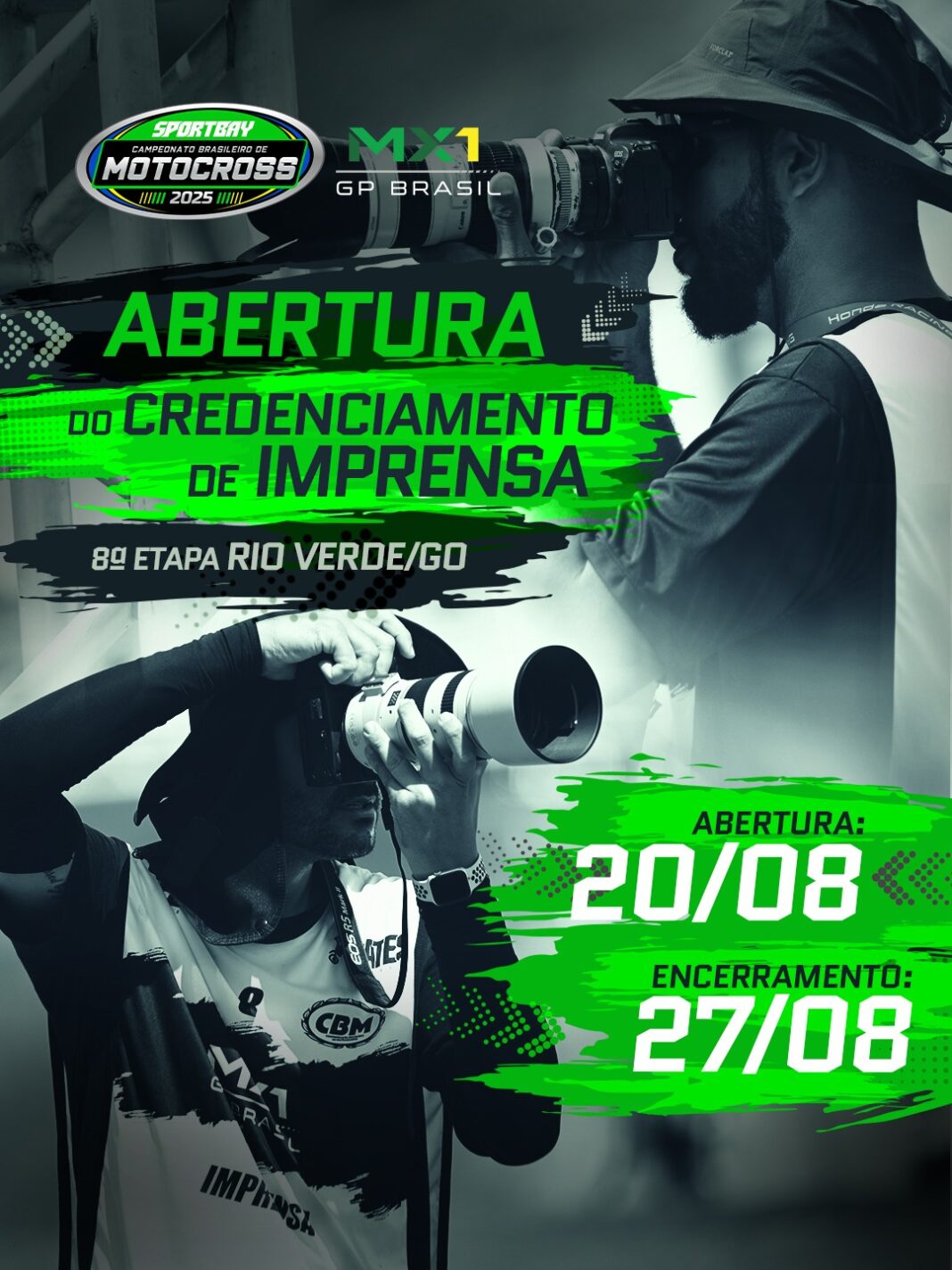 A organização do MX1 GP Brasil Sportbay, anuncia oficialmente a abertura do credenciamento de imprensa para a 8ª etapa, que será realizada nos dias 30 e 31 de agosto, em Rio Verde (GO).